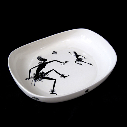 There was a great interest in foreign travel in the 1950s, and a fascination with Africa in particular. Exotic images of tribal dances and animal skin patterns popped up on glassware, fabrics and ceramics, such as this dish for Wade and the Zambesi pattern coffee pot by Jessie Tait. It is nice therefore to come across an original piece from the period like this Original Oil on Board painting from Mali. Fantastic graphic imagery - almost silhouette figures with a splash of vibrant yellow. Complete in the original frame, 70x50 cms, this is a unique statement piece for any Modernist Interior. POA-info@kirkmodern.com